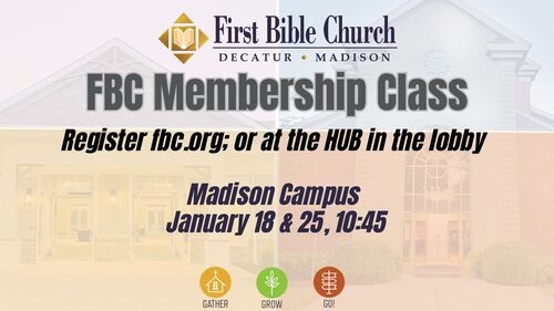 If you're interested in becoming a member of First Bible, a two part membership class will take place for the Madison Campus,
